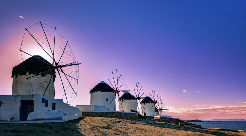 Walk up the hill and take in the Windmills of Mykonos! These iconic old windmills overlook Little Venice and the beautiful Aegean Sea.